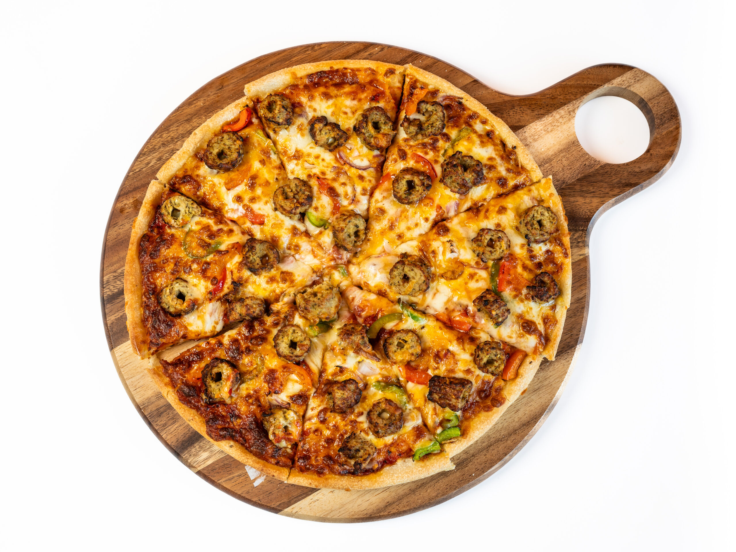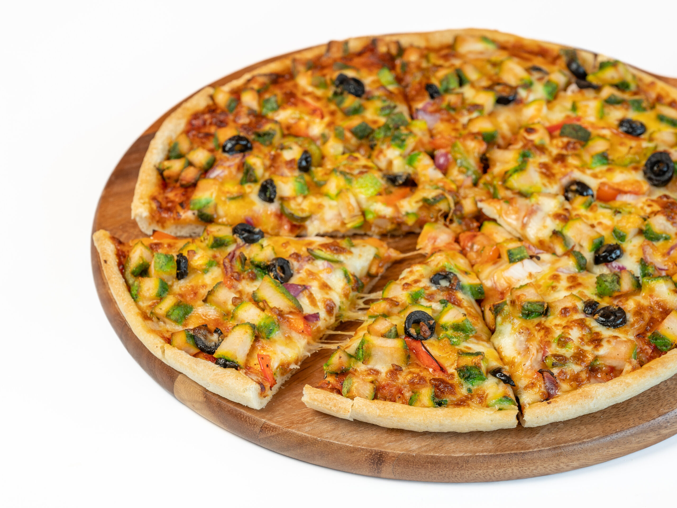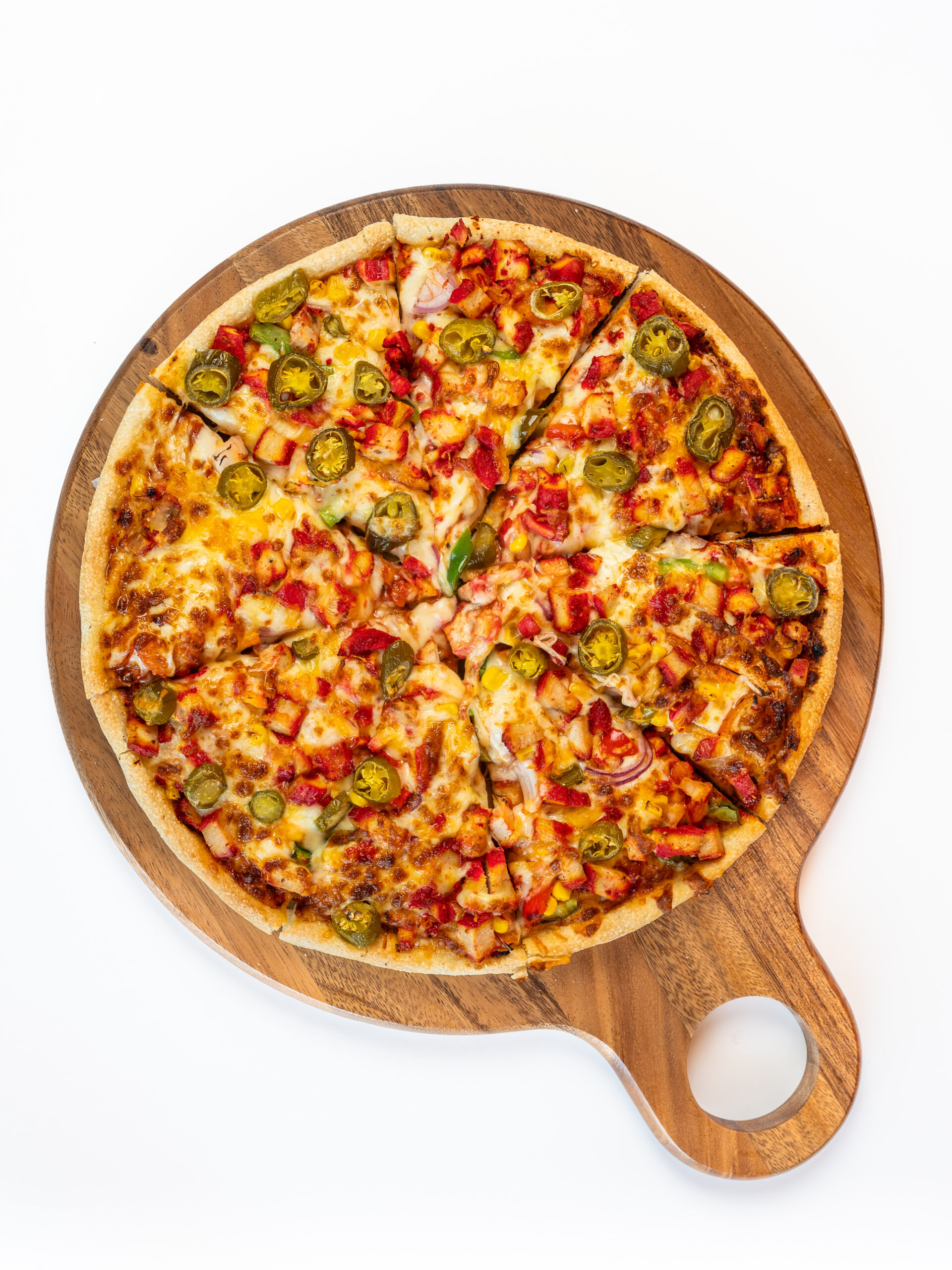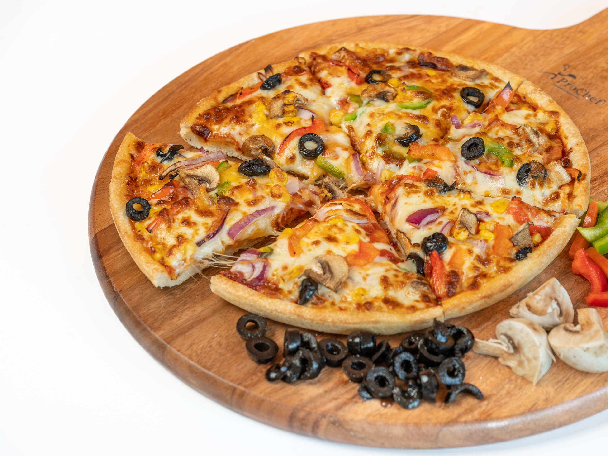 Bell pepers, Cheese, House sauce, Green olives, Onion, Tandoori paneer