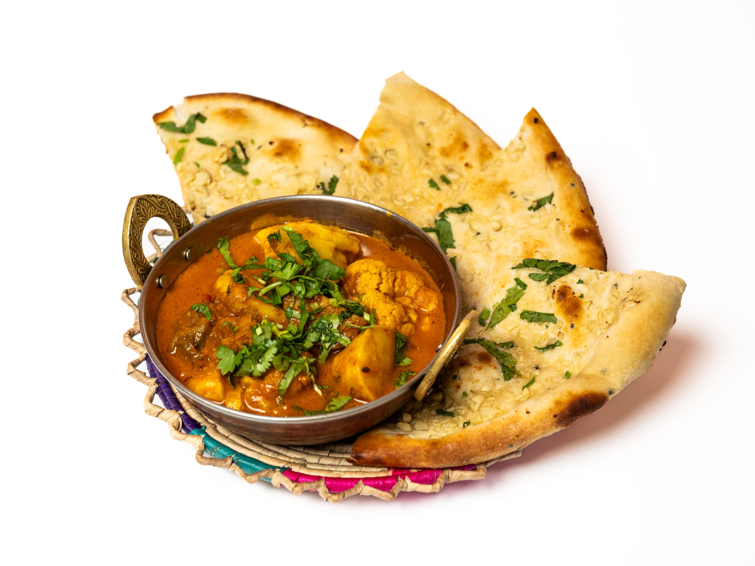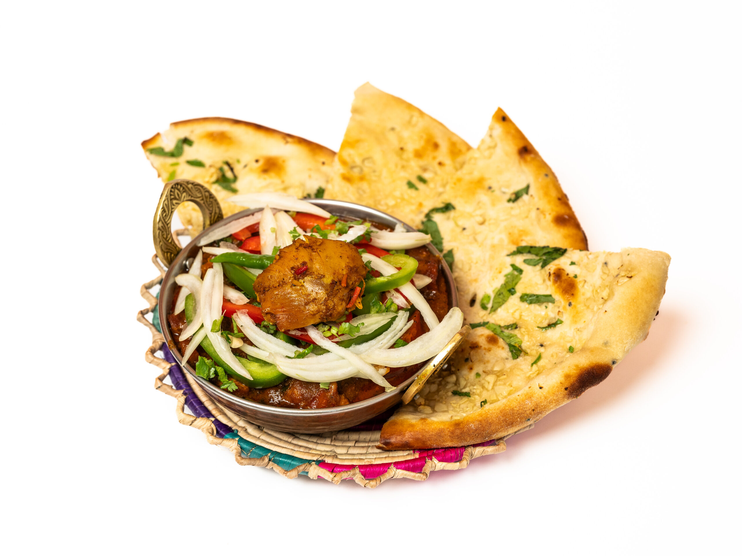 Deze bijzondere, traditionele gerechten zijn afkomstig uit het Noordwesten van India en Pakistan Vergezeld door gemengde groenten en naan brood of Biryani rijst.