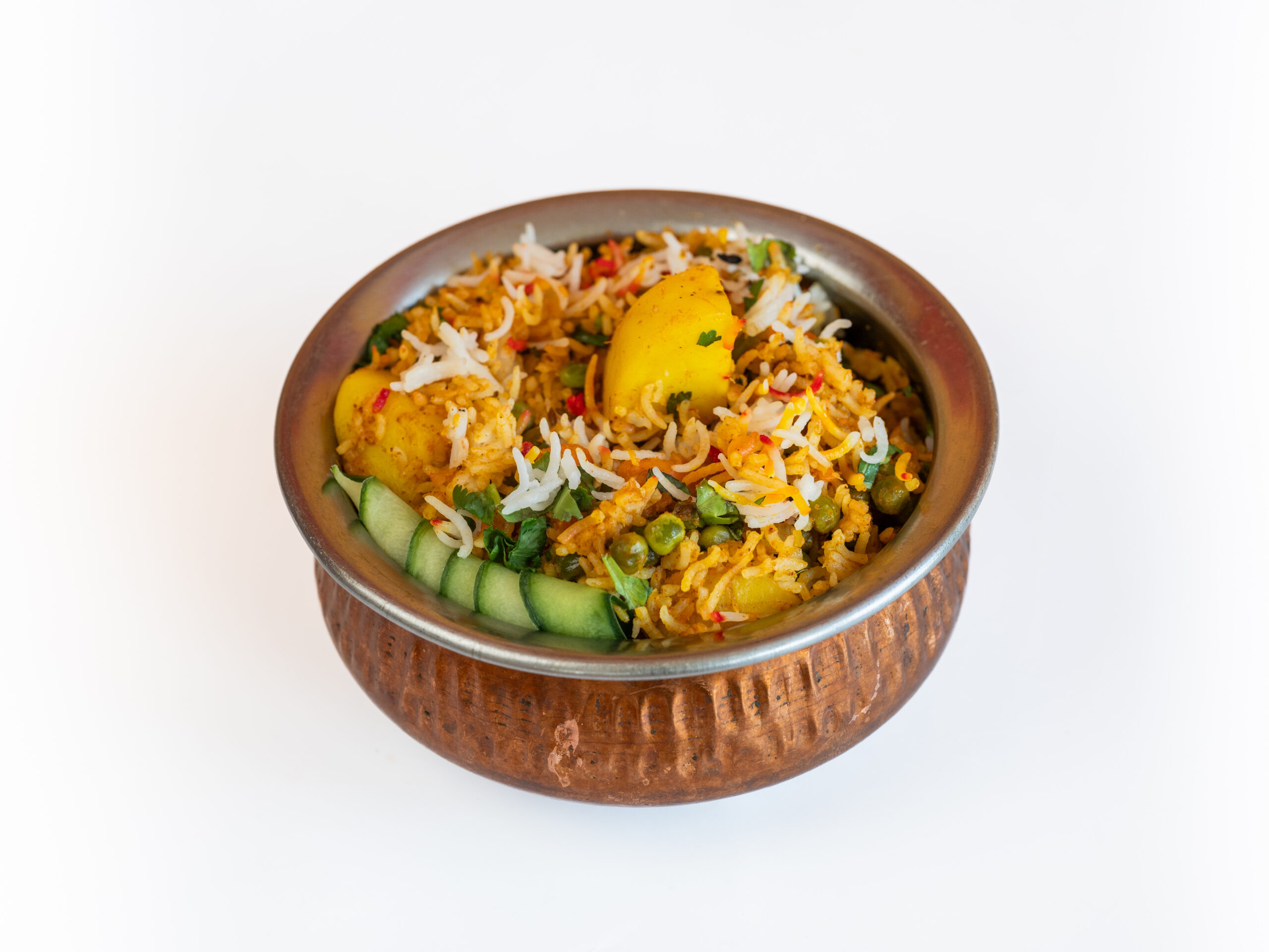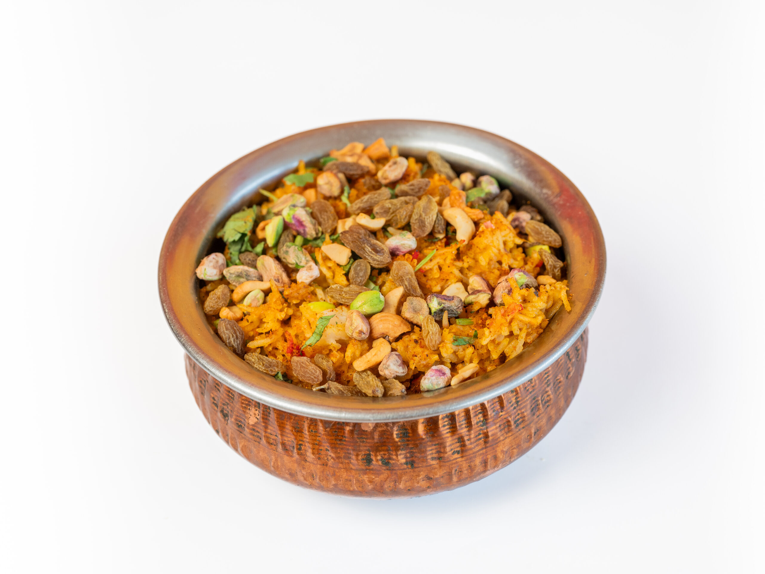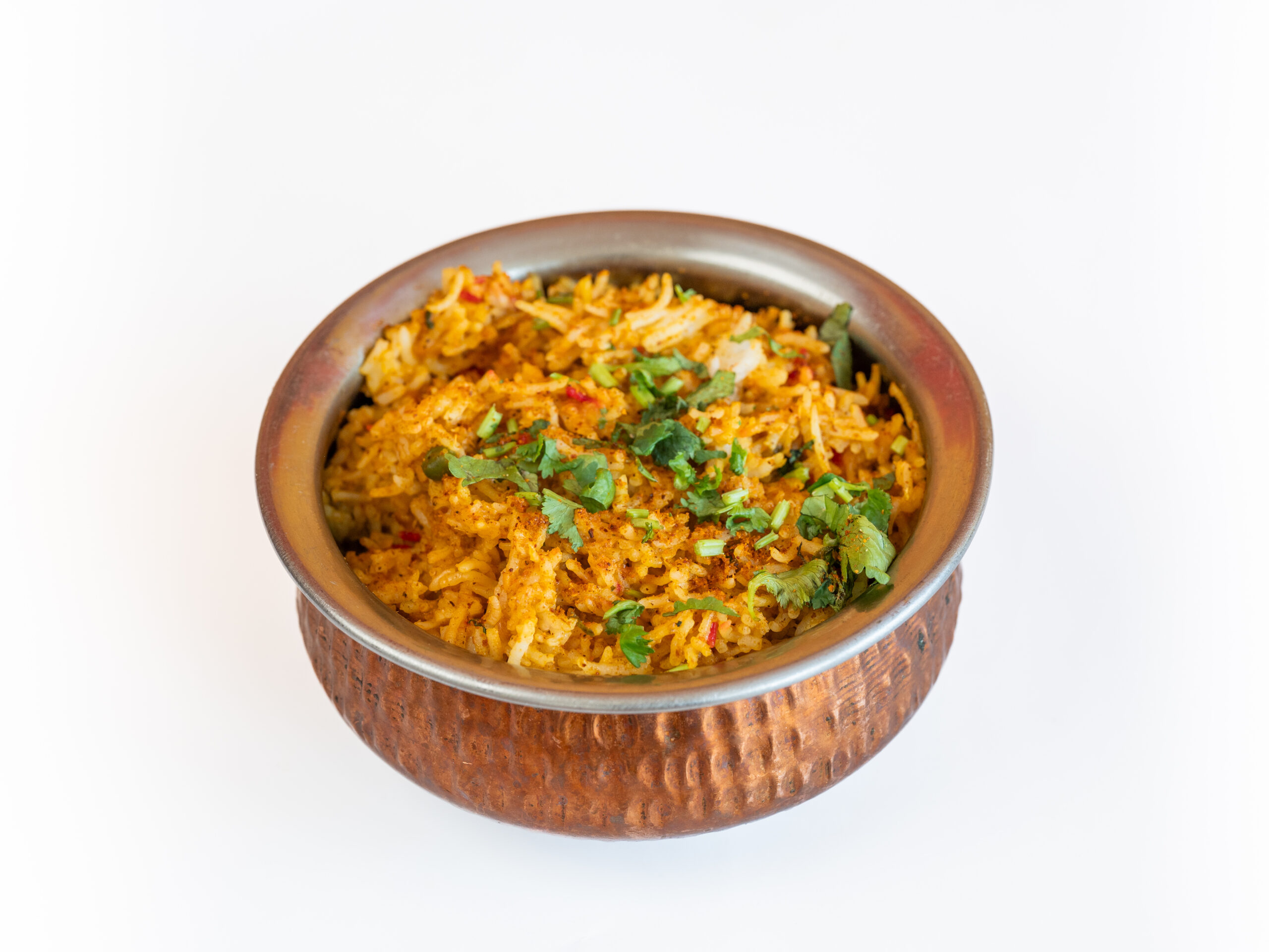 Een rijstgerecht van Basmati rijst met gedroogde uien, koriander en Indiase / Pakistaanse kruiden.ROGAN JOSH SPECIALITEITEN
