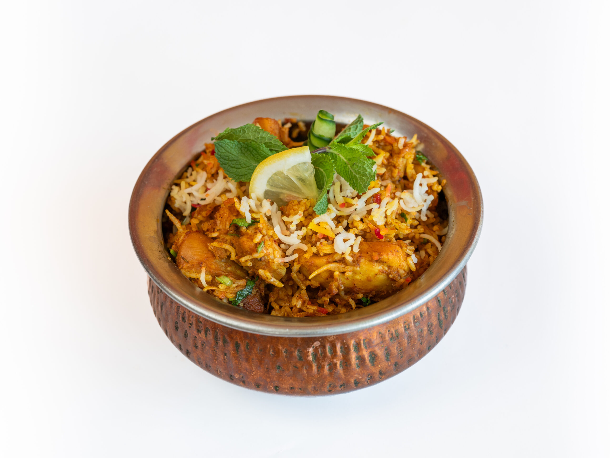 Papadum & Mint Dip Chicken tikka Biryani Fresh Salad Raita Mango Lassi