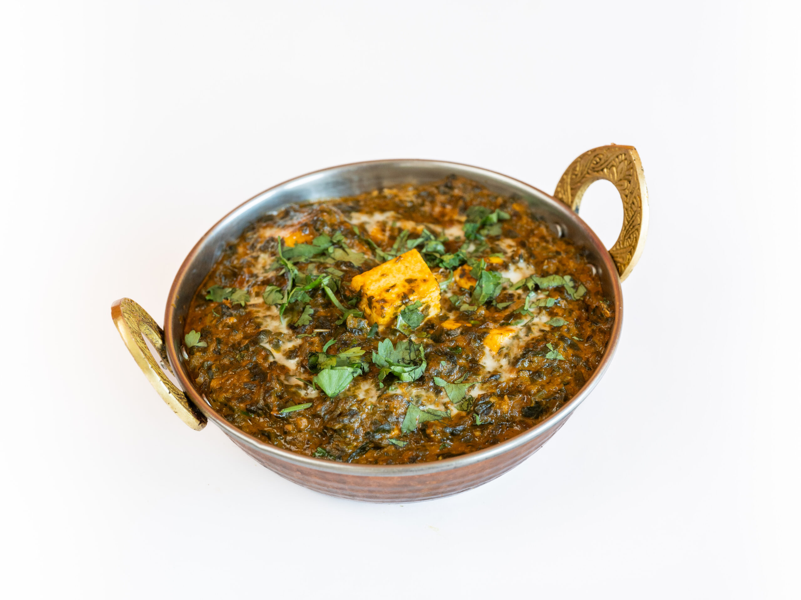 Spinazie en aardappel in een kruidige currysaus.